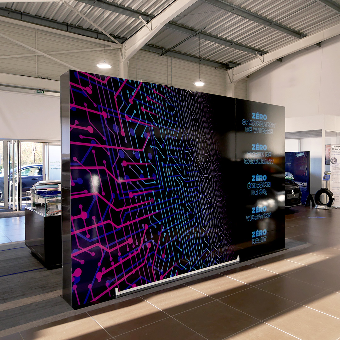 Peugeot Urrugne Création d’un habillage graphique grand format pour le showroom électrique de @PEUGEOT Urrugne. Client Peugeot Urrugne Projet Habillage graphique Date Janvier 2022 Partager Article précédent Enka Article suivant Hélianthal Talazur